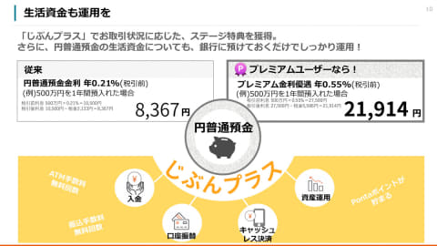 プレミアムステージユーザーについては従来、ATM手数料や振込手数料などに関する優遇はあったが、普通預金金利の優遇策はなく、他のユーザーと同様に円普通預金の金利は年0.21%だった。