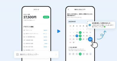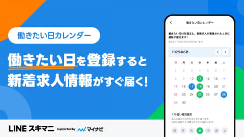 LINEヤフーは、単発雇用マッチングサービス「LINEスキマニ」において、「働きたい日カレンダー」の提供を開始した。ユーザーが働きたい日や曜日をカレンダーに登録すると、登録日の求人情報の通知がLINEに届く仕組み。