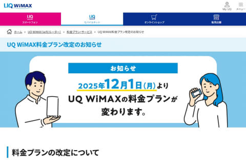 UQコミュニケーションズは、12月1日からWiMAX +5GサービスとWiMAX 2+サービスの料金プランの月額料金を改定。昨今の物価高騰に伴う各種費用の上昇を理由として、それぞれ月額料金を330円値上げする。改定対象の料金プランを現在利用中のユーザーも12月利用分から変更となる。