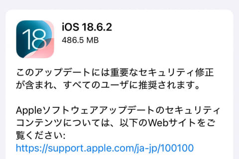 ニュースiOS 18.6.2公開 全ユーザー推奨のセキュリティ修正 臼田勤哉2025年8月22日 10:03 アップルは21日、「iOS 18.6.2」を公開した。重要なセキュリティ修正が含まれ、すべてのユーザに推奨される。 問題はImageIOに起因し、悪意のある画像ファイルの処理により、メモリ破損が発生する可能性があるというもの。この問題は、特定の標的に対する高度な攻撃で悪用された可能性があるという。 また、iPadOS 18.6.2も公開されており、同様のセキュリティ修正が行なわれる。