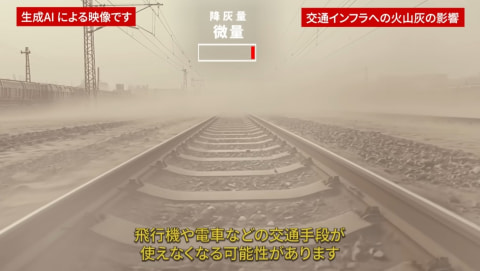 公開された動画では、AIによって火山灰がもたらす生活への影響を具体的に描写し、適切な対策を分かりやすく説明している。なお、動画で生成AIを活用した部分には「生成AIによる映像です」とテロップを入れている。都は、火山防災の日である8月26日を前に、こうした情報発信を通じて都民の防災意識向上を図る。