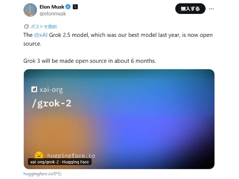 「Grok 2.5」がオープンソース化 半年後にはGrok 3も