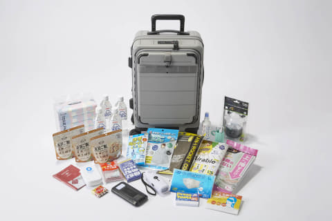 防災用品ブランド「サイボウパーク」を展開するサイボウとの共同開発モデル。防災用品の保管場所に課題を感じる人がいることと、スーツケースは旅行時以外はデッドスペースになりがちということに着目して開発した。