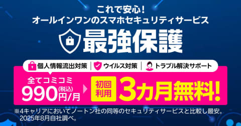 楽天モバイルは、オールインワンのスマホセキュリティーサービス「最強保護」の提供を開始した。料金は月額990円で、初回3カ月は無料。