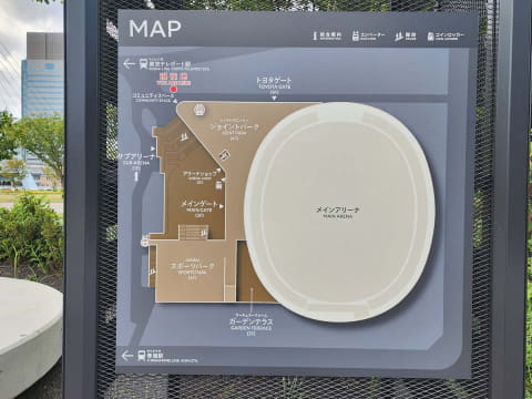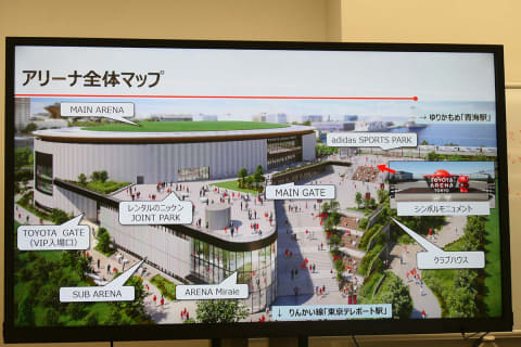 トヨタアリーナ東京は、かつてトヨタの体験型ショールーム「メガウェブ」があった場所に建設。所在地は東京都江東区青海1丁目、アクセスは新交通ゆりかもめ 青海駅から徒歩4分、りんかい線 東京テレポート駅から徒歩5分。