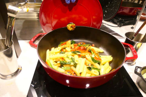 TOYOTA PREMIUM LOUNGEは、ラウンジ内でビュッフェ形式の料理が楽しめ、ライブキッチンではシェフが作るできたての料理も提供される。1シーズンごとに年間で販売される席で、価格は2席198万円~。別料金でワインセラーのワインも選べる。