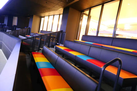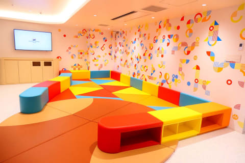 ファミリールームも3階に設置。観戦に飽きてしまった子供が遊べるよう、座席の後ろに子供の年齢に合わせた2タイプのプレイスペースを備える。観客席も子供と見やすいようにベンチシート仕様とした。