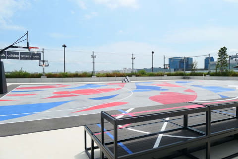 屋外にはメインゲートを挟んで左右に2つのパークを設置。メインゲート向かって右側にはバスケットコート1面がある「adidas SPORTS PARK」を用意し、試合日にはフリースロー大会などを開催予定。