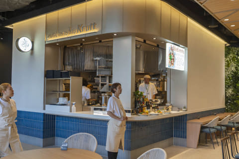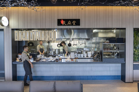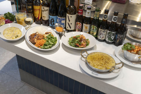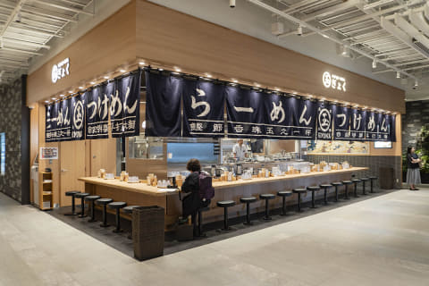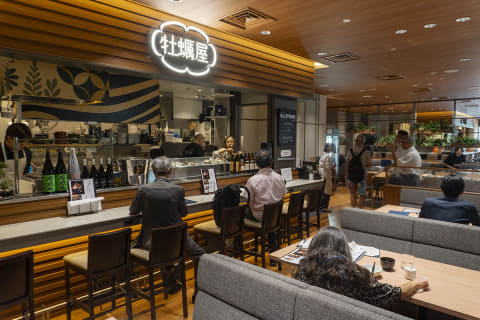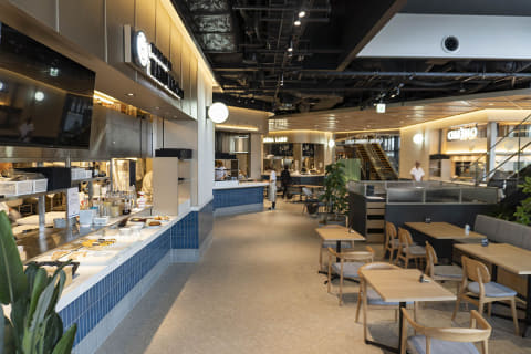 レストランゾーンはダイニングホールの隣に設置。ランチからディナーまで、ひとり利用からグループ利用まで、幅広いシーンとニーズに対応したラインアップを取りそろえる。