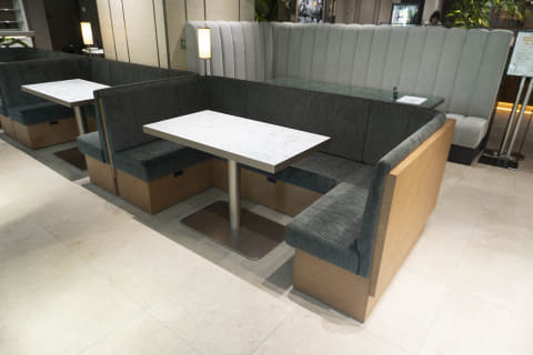 座席はチェアタイプからソファタイプまで多彩で、気分や好み、用途に合わせて選べる。一部座席には電源コンセントも設置されている。