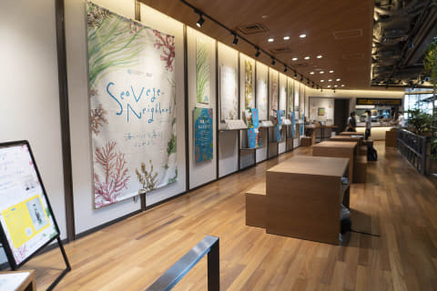 1階には飲食店のほか、ポップアップエリアを設置。展示や販売を通じて「ヒト・モノ・コト」のコミュニティハブとなることを目的とした企画を開催する。第1弾イベントとして9月1日から30日まで、海藻をテーマとした「– 海とつながる暮らし、はじめよう。 –Seavege‑ Neighbors」を開催する。