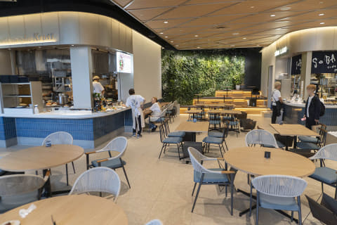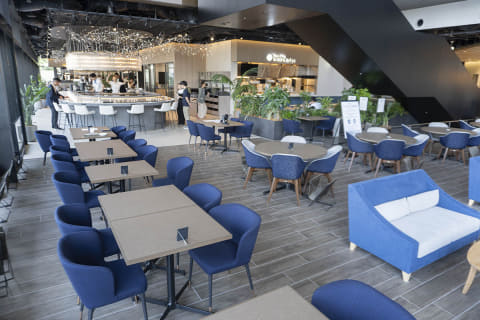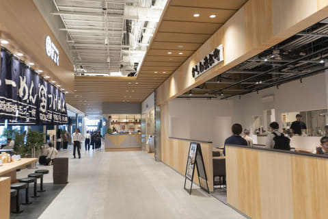共用席の数は計約770席、うちテラス席は約230席で、テラス席はペット同伴も可能。フードコート形式のホールのほか、レストランゾーンもあり、商業エリアの席数は合計で約1,000席となる。
