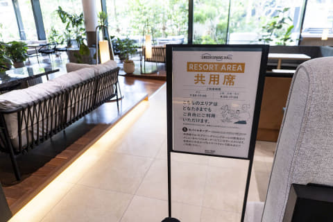 レストランゾーンのエリア内には、誰でも自由に利用できるスペースが設置されている。