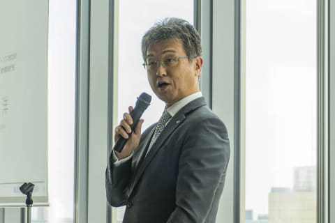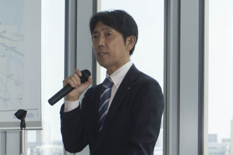 野村不動産 芝浦プロジェクト本部 運営部長 鈴木宏昌氏は、商業エリアのテーマとして“まちのコミュニティハブ”を掲げていることを説明し、「近隣のワーカーや居住者などに、パブリックスペースとなる共用席を、コミュニティ形成の場としても使っていただきたい」と話した。