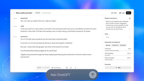 より自然な発話を目指し、「速く、プロフェッショナルに話してください」「フランス語のアクセントで共感的に話してください」などといった、細かい指示にも従うことができるようトレーニングされた。新しい音声APIとして「Marin」と「Cedar」も公開されている。