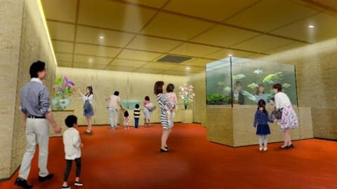 広島もとまち水族館は、10月31日に7階にオープン。延床面積2,700m2、展示水槽66基を配置し、空間全体に舞台美術の技法を取り入れた空間演出型の水族館として展開する。海中の生き物だけでなく両生類・爬虫類など、約200種類(3,000点)の生物を展示予定。