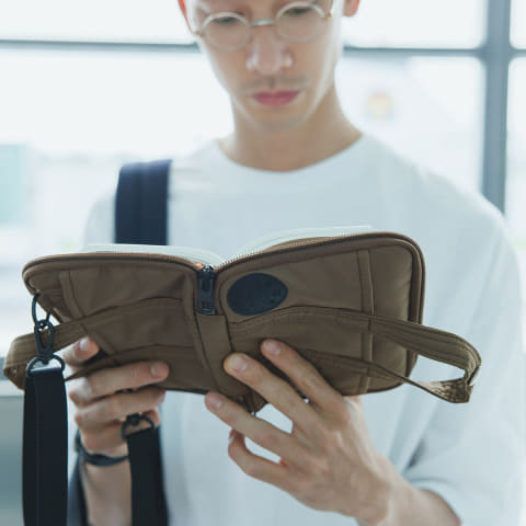 外装には、光沢を抑えたカジュアルな風合いと柔らかな触り心地が特徴のナイロンオックスを使用している。カラーは、オリジナルサイズ(A6)用がライトブラウン、カズンサイズ(A5)用がブラック。