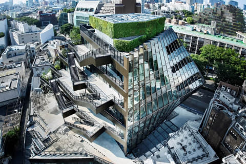 建築デザインはOMAの重松象平氏によるもので、「デュアリティ(二面性)」を建築コンセプトに、原宿・表参道に併存する異なる街の個性をつなぐ空間として計画されたという。地上6階・地下2階の高層棟と地上1階の低層棟で構成され、両棟の間に街の回遊性を高めるパサージュ(敷地内通路)を設けた。