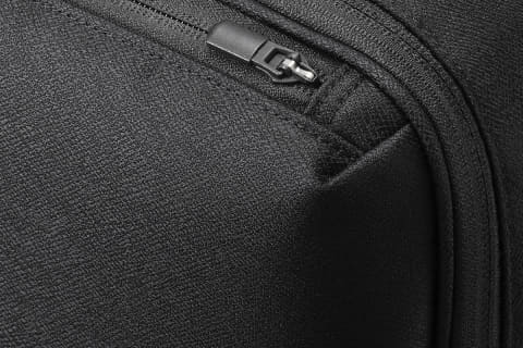 ガジェタブルSFは機能性に加え、ファッション性を高めたモデル。コーデュラナイロンを織り上げ、サフィアーノの風合いを表現した本体生地により、耐久性と上品な質感の両立を図った。サフィアーノとは本来、レザーに細かい網目のような型押し加工が施されたものを指す。光沢感に特徴があり、ガジェタブルSFでは網目模様の風合いをコーデュラナイロンで再現している。そのほかデザインのアクセントとして、フロントポケットにはメタルファスナーを採用した。