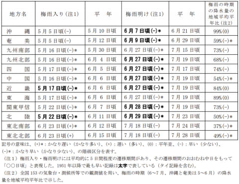 春から夏にかけての天候経過から各地方の梅雨入り、梅雨明けを確定。今年は季節の進行がかなり早く、東北地方を除き5月に梅雨入り、6月に梅雨明けとなり、統計開始(1951年)以降で最も早い記録となった地域もあった。