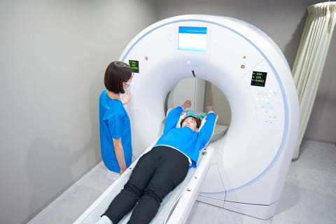 番号で呼ばれたら荷物をロッカーに預け検査室に入ります。スタッフの指示に従い、検査台に横になったら指示に従って呼吸をし、5分ほどで検査が完了しました。CTは5~10分、頭部MRIは15分ほどで終わるそうです。