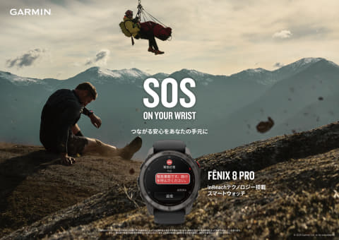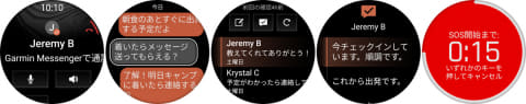 緊急時のSOS発信は、Garmin応答センターにSOSが届き次第、要救助者の位置情報や現在の状況などを救助組織へ救助要請に関する情報を提供。事故検出機能も搭載し、登録済みの緊急連絡先へ自動で通知する機能も備える。