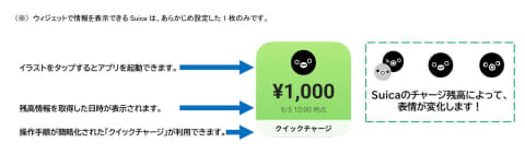 また、残高によってウィジェット上の「Suica のペンギン」の表情が変わるなど、見て楽しむ機能も備えている。