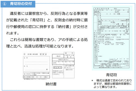 青切符では前科はつかないものの、手続が簡便になり、反則金の徴収も合わせ、実効性のある責任追及が可能となる。今後は違反の実情に合わせて、指導警告や青切符、赤切符等での処理が行なわれることになる。