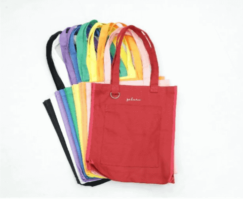 カラーキャンバストートは容量9Lで、カラーは9色。ブラック、ホワイト、ブルー、パープル、グリーン、レッド、オレンジ、ピンク、イエローを用意する。