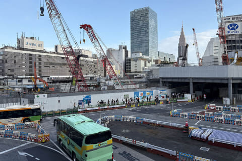 新宿駅西口駅前広場を人中心の空間にするための動線変更。9月27日未明から、新宿駅西口駅前広場の車両動線や歩行者動線を変更する工事を実施する。実施時間は0時頃から3時頃にかけて順次。