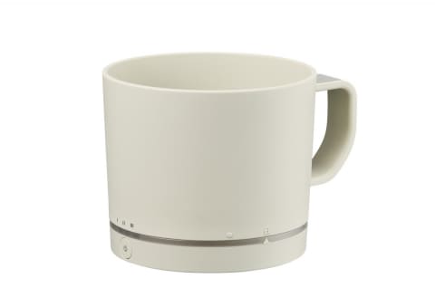 カップ側面にスイッチを備え、電源を入れたら好みの強度(3段階)を選択して通常のカップと同様に使用する。耐熱性、耐久性が高い機器設計で、食洗機にも対応する。