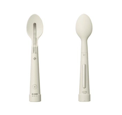 エレキソルトは、カップ内部、もしくはスプーン先端の電極から微弱な電流を食品に流し、塩味やうま味など、食事の味わいを増強するデバイス。美容家電を製造するヤーマンと開発し、同社の通電技術の知見や、キリンの什器開発や評価技術を応用。自然な動作で安定して電流が流れ、日々の食卓シーンで馴染むデザインを採用した。いずれも電源はリチウムコイン電池(CR2032)。