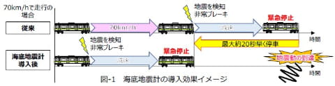 これまでの自社地震計を用いた地震検知と比べて、地震検知から緊急停止までの時間を最大で約20秒短縮することが見込まれ、より早く非常ブレーキを作動させることで、早めに減速できる。一定の条件下では、大きな地震動が沿線に到達する前に列車が緊急停止することがさらに期待できるとしている。