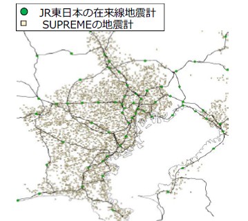 4月からは、首都圏1km2あたり1基以上という高密度で地震計を配置した地震防災システム「SUPREME」の地震計情報の受信を開始。沿線の地震動をよりきめ細かくかつ正確に把握し、従来以上に現地の揺れに近い地震動値で列車運行判断ができるよう努めている。