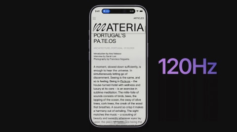ディスプレイは6.5型のSuper Retina XDRで、ProMotionに対応し最大120Hz駆動を実現。ピーク輝度は3,000ニト。