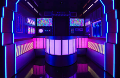 演出はアーティスト・増田セバスチャンとIMAGICA EEXとのコラボによるもので、レトロフューチャーな装飾とCG・電飾・音響を立体的に組み合わせている。