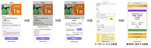 1,000コインで2枚同時交換も可能。2名分の購入手続きが一度で済むよう用意しているメニューで、子供など自身での購入が難しい場合に代表者がまとめて交換するといったニーズを想定している。2枚同時購入は同じ運行のみで利用可能。