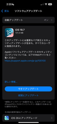 そのほかセキュリティアップデートなども適用される。また、一部の機能は、地域やiPhoneモデルによっては使用できない場合がある。なお、従来バージョンのセキュリティアップデートなどを行なった「iOS 18.7」も公開されている。
