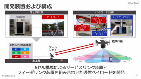 6月に東京都の八丈島で実施した実証実験では、高度3,000mに滞空する軽飛行機に今回開発したペイロードを搭載して通信を中継させることで、基地局と携帯端末間のエンド・ツー・エンドの5G通信と、6セルのフットプリント固定技術の実証に成功した。