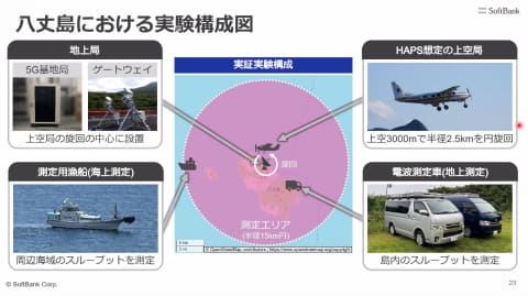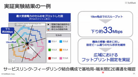 この計測地点は、エリア半径100kmの地点における高度20kmのHAPSの機体の仰角(地上から機体を見上げた時の角度)と同等なため、「HAPSのカバーエリア端に相当する地点でも通信を維持できる見通しが得られた」としている。
