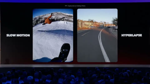 カメラは超広角1,200万画素で、3K/30fpsの動画撮影に対応し、前世代比で2倍以上の解像度での動画撮影を実現している。今秋にはハンズフリー撮影機能がすべてのAIグラスに搭載されるほか、新機能として、スローモーションおよびハイパーラプス撮影が追加される。