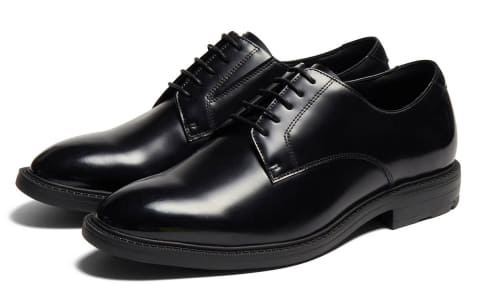 デザインは、外羽根プレーン、内羽根ストレートチップの2タイプで、カラーはプレーンがブラックのみ、ストレートチップがブラックとダークブラウン。サイズは24.5cm~28.0cm、ウイズは4E相当。