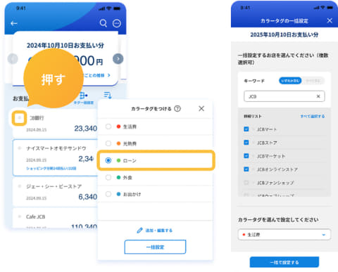MyJCBアプリ、支払明細をタグで分類・グラフ化できる新機能
