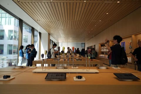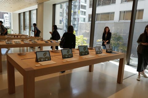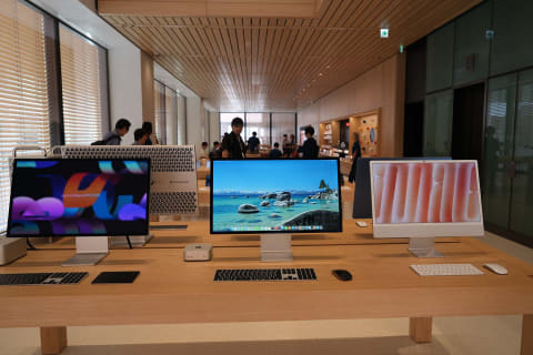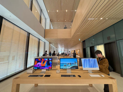 店内には温かみのある木製パネルを配置し、日本のデザインへの敬意を表しているという。アクセシビリティにも配慮し、様々な高さのテーブルや椅子を用意。ジーニアスバーなど、セットアップなどのサービスを提供するための専用スペースなども設けている。