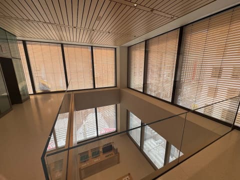 新しいApple 銀座では、構造を見直しており、3方向から光が差し込むレイアウトとなった。可動ルーバーを備えたダブルスキンガラスファサードは、太陽光にあわせて、一日を通じて明るさと室温を調整し、各フロアに自然光が差し込むようにした。また、1-2階と3-4階には吹き抜けを用意しており、銀座の活気ある通りを見下ろせるバルコニーのような空間としている。