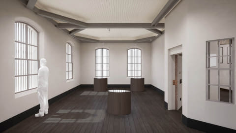 「監獄と社会」のC棟は、監獄をさまざまな価値観や切り口で表現するエリア。開館時には、国内外で活動するアーティストが、監獄から受けたインスピレーションとそれぞれの感性で制作した作品を展開する予定。