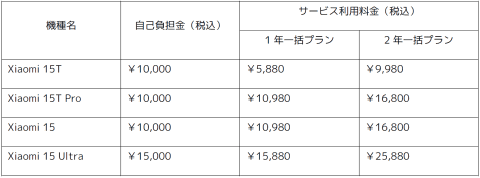 Xiaomi Careは有償保証サービスで、メーカー保証外の落下や水没による故障にも対応。対象となる端末はXiaomi 15TシリーズおよびXiaomi 15シリーズ。機種によって料金が異なるが、例えば、Xiaomi 15T Proの場合は1年プラン10,980円、2年プラン16,800円。自己負担額は10,000円で年2回まで修理を受けられる。また、発売記念キャンペーンとして、15Tシリーズ購入者は1年プランの料金で2年プランに加入できる。