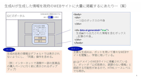 平 将明 デジタル大臣は、Gビズポータルについて「事務の効率化にむけて生成AIを活用し、横断検索を実現した。ハルシネーション(誤情報)についても、生成AI由来の情報を表示するかどうか確認するほか、HTMLタグも付与して確認できるようにしている。来年3月のGビズポータルリリースに向けて関係省庁と連携して解決を進める。生成AIを含む先端技術を行政に取り込むことで、AIフレンドリーな社会の実現を目指したい」と説明した。