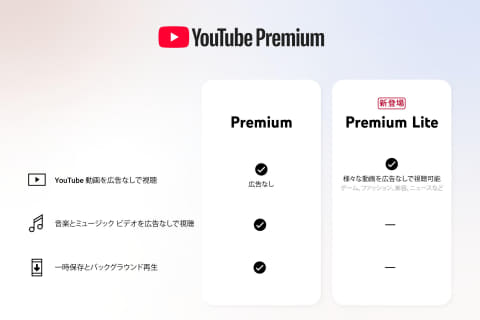 YouTubeは、月額780円で“広告が少なめ”となる新たな料金プラン「YouTube Premium Lite」を9月25日から順次日本でスタートする。米国では3月から展開していたが、日本でも試験的に利用可能となる。
