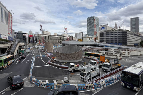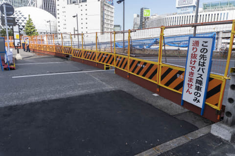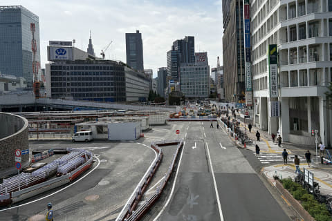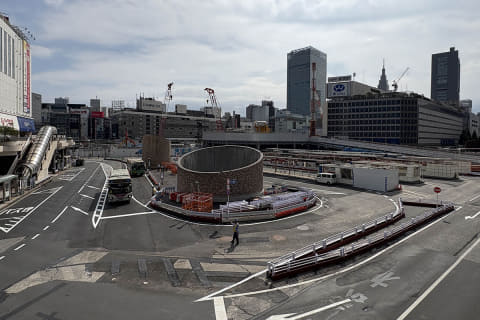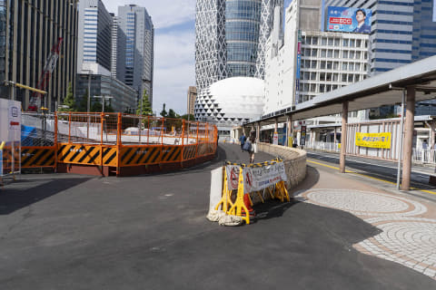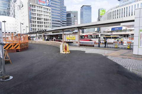 歩行者にとってのメリットは、東西の移動が楽になっただけではありません。駅からバス乗り場への動線は地下のみでしたが、地上レベルでもアクセスできるようになりました。地下でも大規模な工事が行なわれていることから、バス乗り場へのアクセスが非常にわかりづらいのが現状です。今後は、地上の新たな歩行者空間を目指せば、バス乗り場にたどり着けるでしょう。